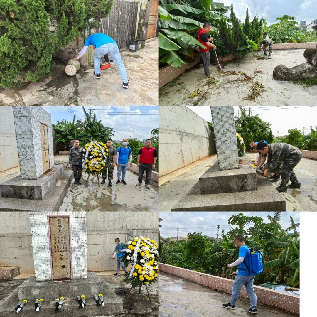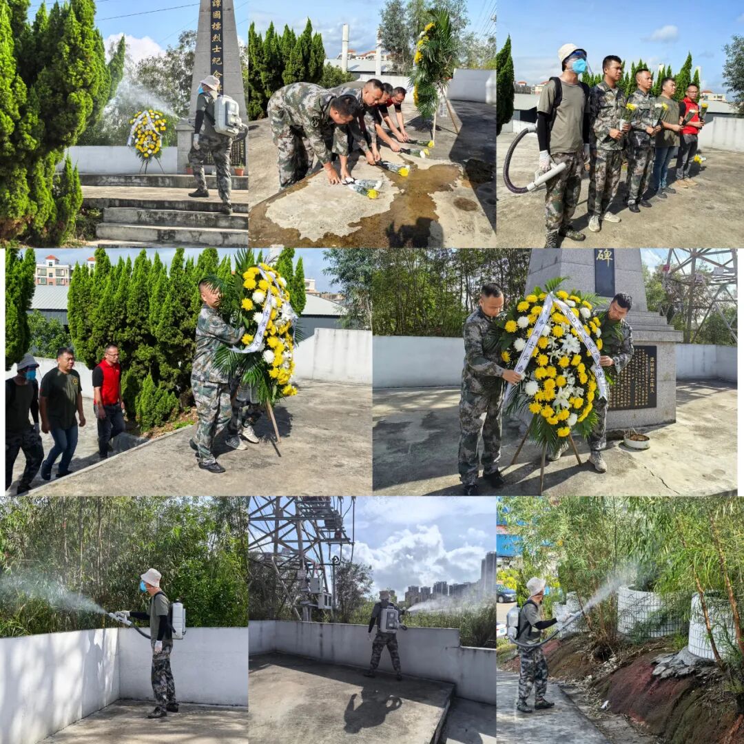 活動開展前,全體人員分頭有序地對烈士陵園的衛生進行大清潔,認真地擦拭紀念碑上的塵土,清掃周邊的落葉雜物,并對綠植進行防滅蚊消殺,用雙手為先烈們守護起一方整潔莊嚴的紀念空間。