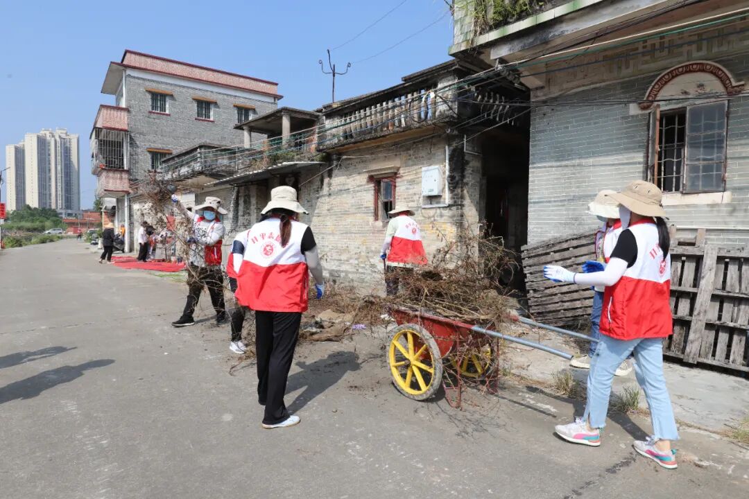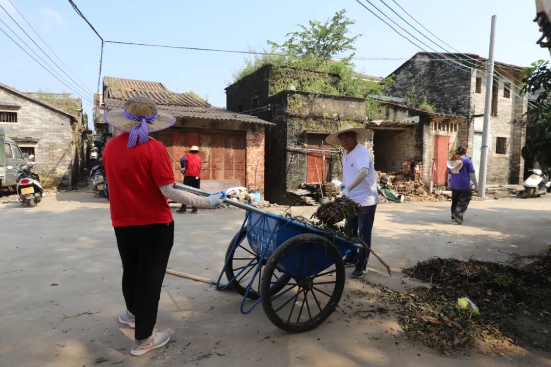 村級主會場的誓師儀式同樣熱血沸騰。10月18日早上,開平市委常委、市委辦公室主任、統戰部部長伍德斌,江門市供銷社副主任、供銷集團董事長鄺衛民,水口鎮黨委書記司徒錦泉,鎮黨委副書記、鎮長胡萬程以及支援單位服務隊、鎮民兵隊伍、綜合行政執法隊、義工志愿者、環衛工人等200多人齊聚紅進沖奕村,掀起以“兩清一滅”為核心的全域全員愛國衛生運動熱潮。
