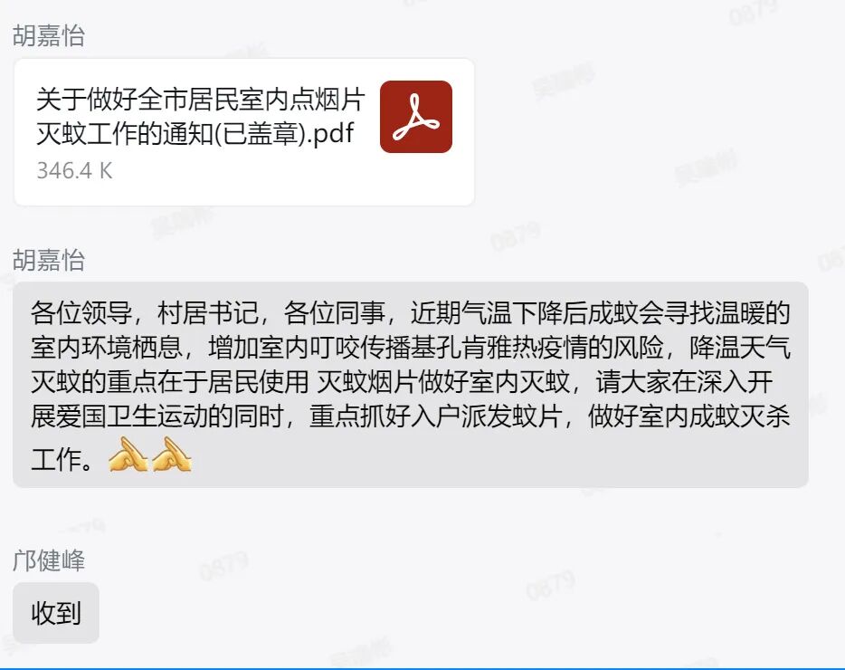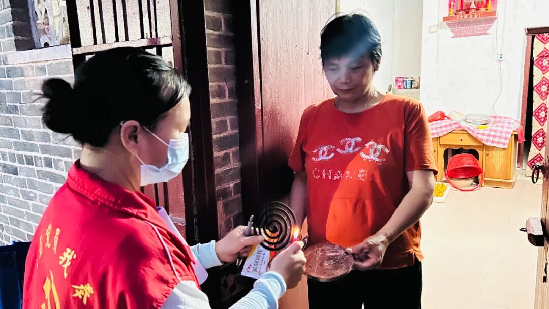 “阿叔,這是免費派發(fā)的滅蚊片,現(xiàn)在秋天毒蚊子特別厲害,一早一晚做好防護,點上蚊香或滅蚊片”“點滅蚊片的時候一定要放在防火托盤上,遠離窗簾、紙張等可燃物,點燃之后就去上班,回家之后注意通風(fēng),就能享受‘無蚊’之家”……黨員干部和志愿者的貼心叮囑,確保家家戶戶都能安全、正確地使用防蚊產(chǎn)品,讓滅蚊片和蚊香真正發(fā)揮“滅蚊利劍”和“驅(qū)蚊護盾”的作用。
