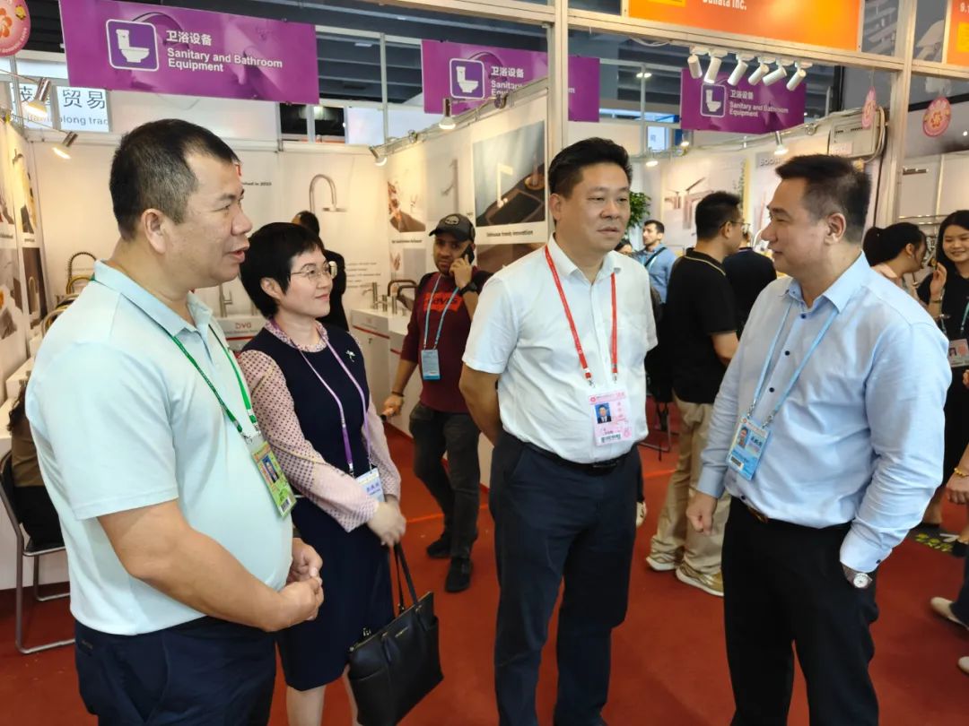 10月24日,開平市副市長許永鋒帶隊到廣交會現場調研,走訪了華藝衛浴、希恩衛浴、偉祥衛浴、柏斯高衛浴、力蒲衛浴、頂尖管業等多家企業,了解廣交會客商、產品設計研發、品牌建設、市場運營等情況。水口鎮黨委副書記、鎮長胡萬程陪同調研。