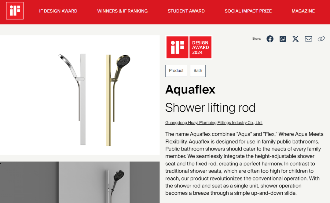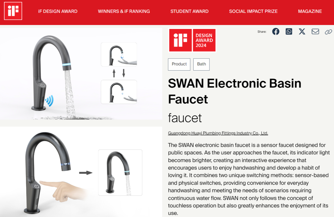 2024開(kāi)局,華藝就打響開(kāi)門(mén)紅“第一炮”!近日,2024德國(guó)IF設(shè)計(jì)大獎(jiǎng)公布最終獲選名單,在這場(chǎng)權(quán)威的國(guó)際設(shè)計(jì)盛宴中,華藝衛(wèi)浴參選的“SWAN電子面盆龍頭”、“Tube面盆龍頭”、“Aquaflex花灑升降桿”憑借出色的設(shè)計(jì)在數(shù)以千萬(wàn)件優(yōu)秀作品中脫穎而出,榮獲2024德國(guó)IF設(shè)計(jì)大獎(jiǎng)。