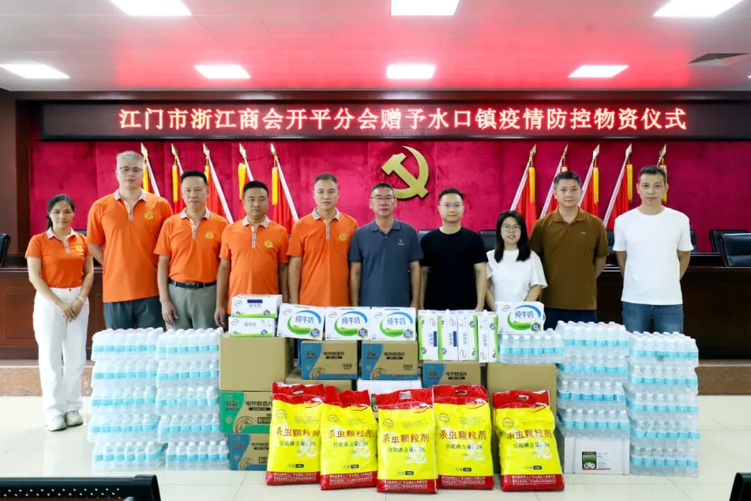 江門市浙江商會開平分會捐贈一批礦泉水、牛奶、電熱蚊片、殺蟲顆粒和熱煙霧劑,為奮戰一線的防控人員送來“及時雨”的同時,對持續開展蚊媒密度控制、阻斷疾病傳播途徑具有重要作用。