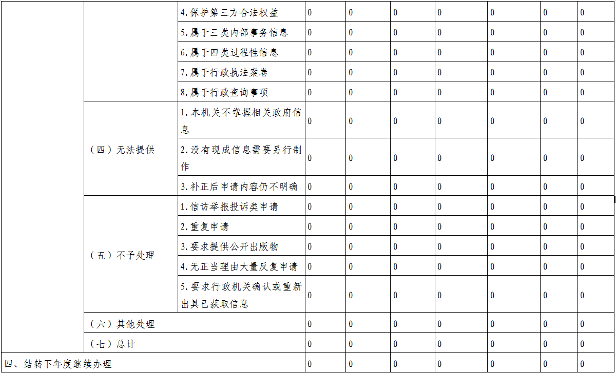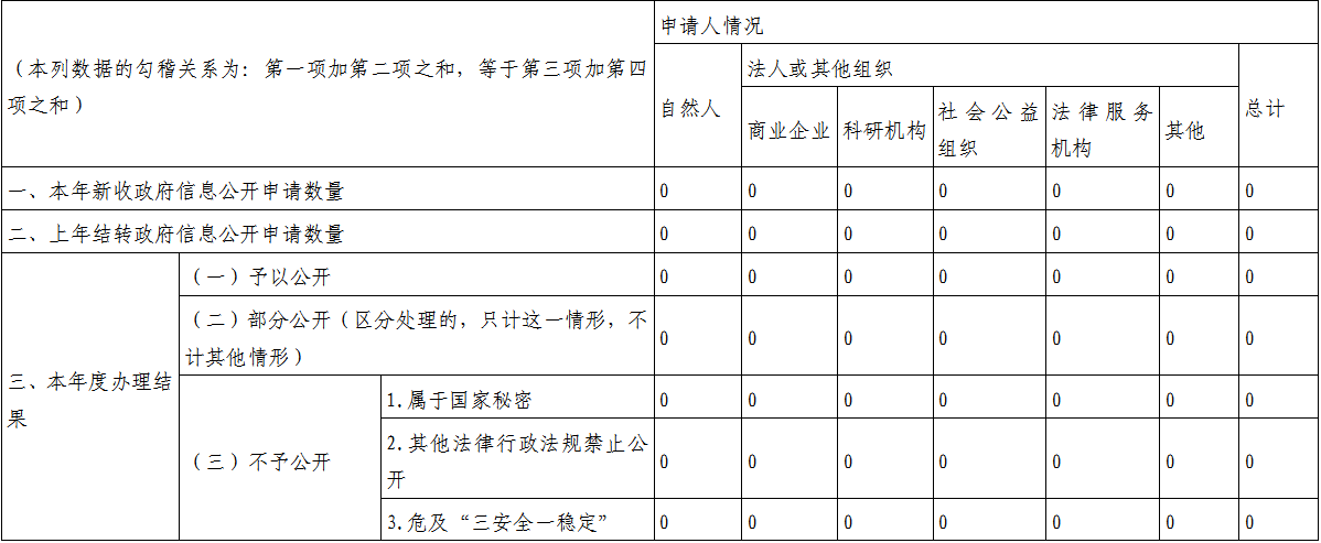 一、總體情況 2024年以來,蜆岡鎮堅持以習近平新時代中國特色社會主義思想為指導,認真貫徹落實上級各項決策部署,按照市的統一安排,遵循“應公開、盡公開”的原則,扎實有序推進政務公開工作落實。根據《中華人民共和國政府信息公開條例》(以下簡稱《條例》)規定,現向社會公布2024年蜆岡鎮政府信息公開工作報告,內容涵蓋2024年1月1日至2024年12月31日期間的蜆岡鎮政府信息公開情況。 (一)主動公開政府信息總體情況。全面推進政務公開,加強信息公開平臺建設,依法保障人民群眾的知情權、參與權和監督權,2024年公開政務信息166條,政府公信力不斷提升。 (二)依申請公開方面。2024年,蜆岡鎮未收到政府信息公開申請,無依申請公開情況。 (三)政府信息管理方面。蜆岡鎮高度重視政府信息公開工作,嚴格落實信息發布“三審”制度,加大信息公開力度,推進政府信息公開工作有序開展。不斷優化完善“信息公開”專欄,及時公開政策文件和信息動態。設立了政府信息公開工作領導小組,領導小組下設辦公室(設在黨政和人大辦公室),明確專人專職負責政府信息公開的日常工作,切實保障蜆岡鎮政府信息公開工作順利開展。 (四)建立健全信息公開制度方面。為更好地實施《條例》,蜆岡鎮結合實際情況,制定了《蜆岡鎮政務公開制度》《蜆岡鎮政府信息公開工作實施方案》等文件,為推動蜆岡鎮政府信息公開工作深入開展提供了制度保證。 二、主動公開政府信息情況 三、收到和處理政府信息公開申請情況 四、政府信息公開行政復議、行政訴訟情況 五、存在的主要問題及改進情況 2024年,政府信息公開工作存在的不足:一是重點領域信息主動公開仍需深化;二是政府網站和政務新媒體運維監管仍需強化;三是務公開工作隊伍穩定性和專業性仍需加強。 針對上述問題,蜆岡鎮將加大工作力度,采取有效措施,扎實做好政府信息公開工作,確保信息公開工作有新的突破。一是提升信息公開質量。加大主動公開力度,及時更新信息,推進重點領域信息公開,提升政策文件公開質量,不斷增強政府公信力和執行力;二是加強媒體矩陣管理。持續做好政府網站和政務新媒體運行情況的日常檢查,發揮媒體矩陣聯動優勢,提升政策的傳播力、影響力與引導力;三是加強政務公開工作隊伍建設。完善政務公開工作規范,加強對工作人員的培訓力度,全面提升政務公開工作隊伍能力和水平。 六、其他需要報告的事項 無。 開平市蜆岡鎮人民政府 2025年1月16日